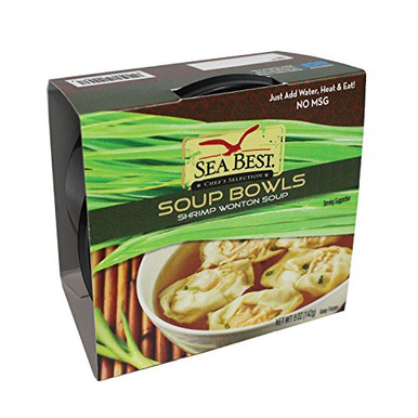 Authentic Asian flavor and Sea Best Shrimp in a quick heat and serve soup bowl. Seasoned broth infused with garlic and spring onion, create the perfect base for tender shrimp filled wontons. Enjoy all the flavor in its own microwaveable bowl. Just add water, heat and eat.