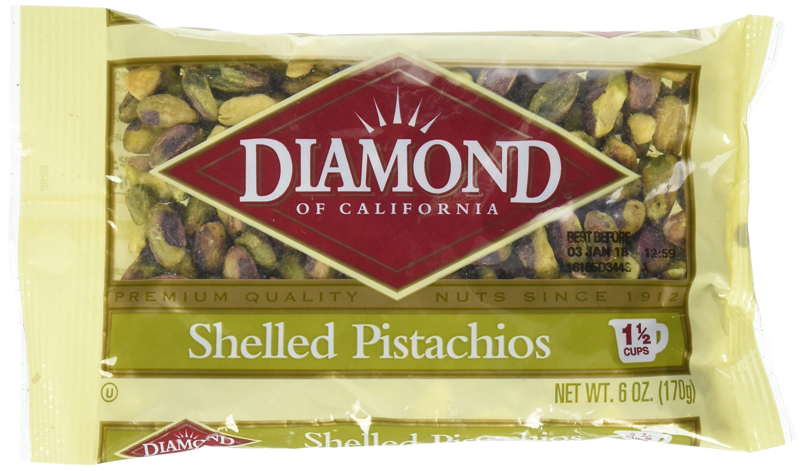 - The manufacturer of Shelled Pistachios is Diamond.