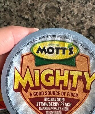 - The manufacturer of Mighty Strawberry Peach Applesauce is Motts.