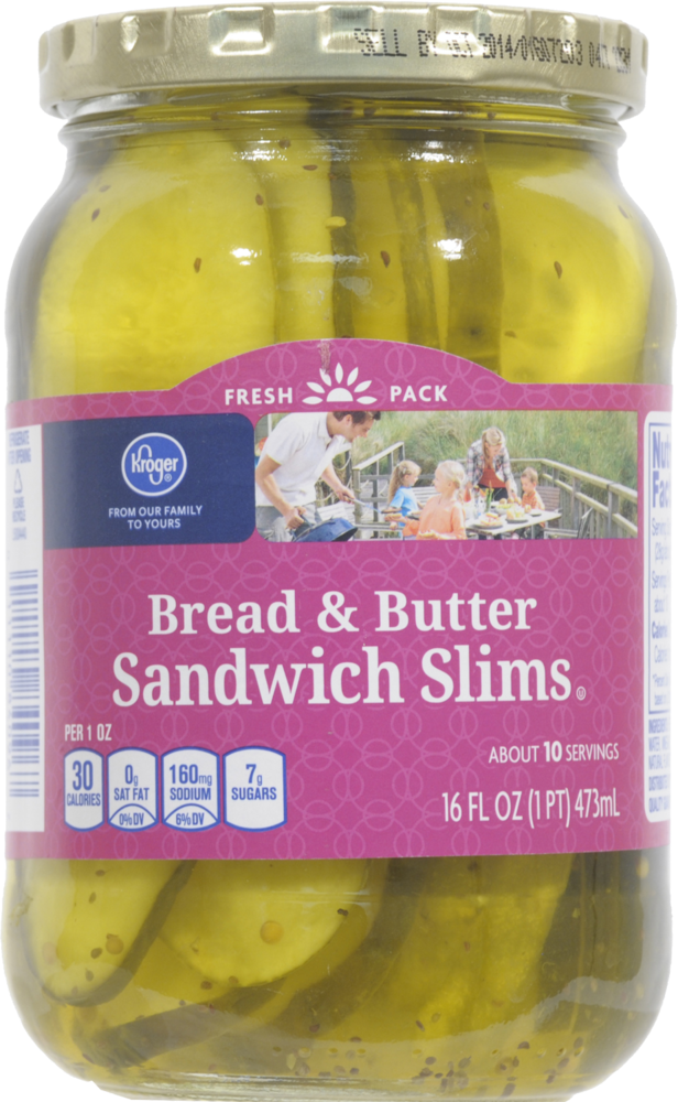 Bread & Butter Sandwich Slims is manufactured by The Kroger Co. with a suggested serving size of 2 Slabs | About (28 G) and has 30 calories per serving.
