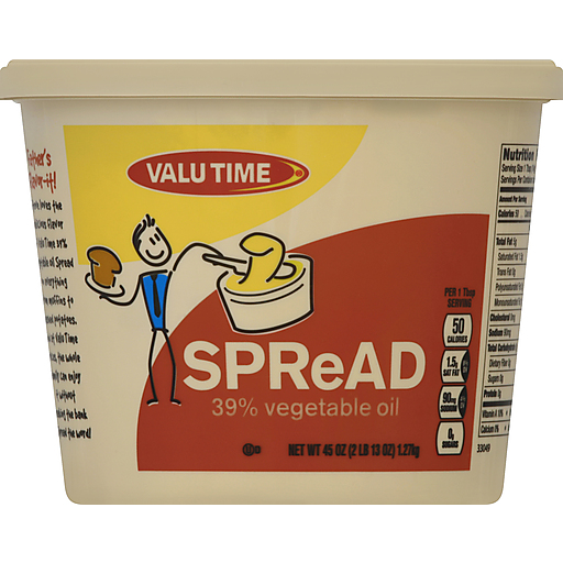 - The manufacturer of 39% Vegetable Oil Spread is Valu Time.