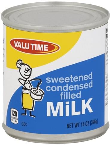120 calories per 2 tbsp. Sweet on sweetened condensed! Grandma G knows she'll get sweet results whenever she bakes with Valu Time Sweetened Condensed Filled Milk. Desserts taste richer, creamier and are quite simply, stirringly delicious. www.valutimebrand.com. Satisfaction guaranteed or your money back. Product of USA.