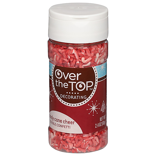 - The manufacturer of Candy Cane Cheer Edible Confetti is Over the Top.