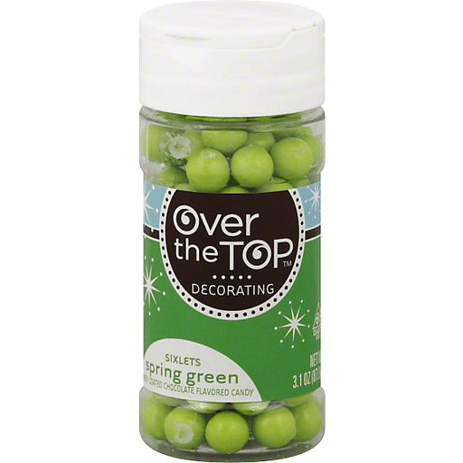 - The manufacturer of Sixlets Spring Green Candy is Over the Top.