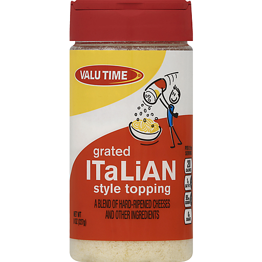 - The manufacturer of Grated Italian Style Topping is Valu Time.