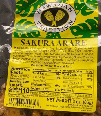 - The manufacturer of Sakura Arare is Hawaiian Tradition.