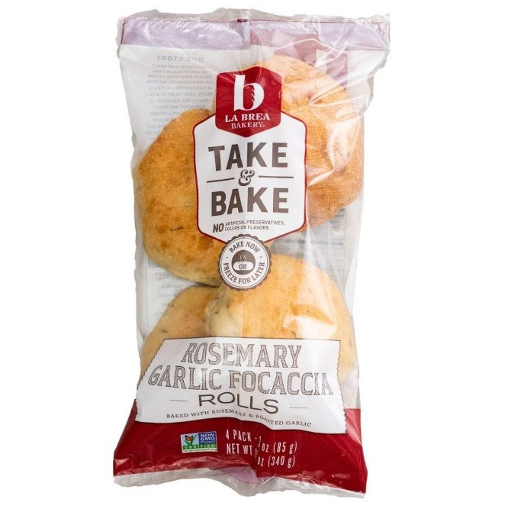 - The manufacturer of Rosemary Garlic Focaccia Rolls (Take & Bake) is La Brea Bakery.