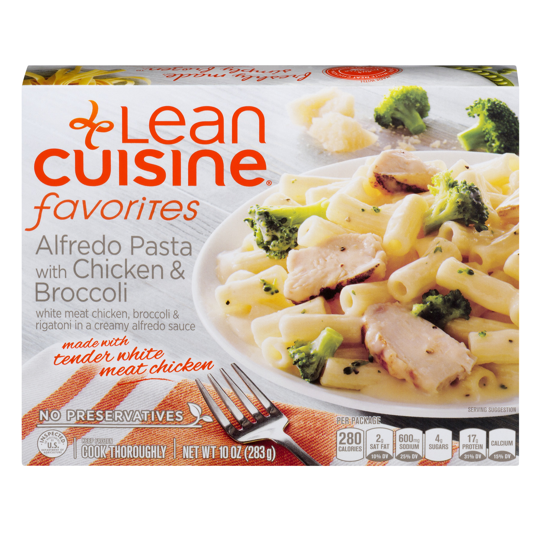 Satisfy your comfort food cravings with a Lean Cuisine Comfort Cravings Alfredo Pasta with Chicken and Broccoli Frozen Meal. At 280 calories and 20 grams of protein per package, these easy-to-make Lean Cuisine frozen meals feature white meat chicken, pasta and broccoli in an Alfredo sauce. Each 10-ounce entree can be enjoyed on its own or with a side salad as part of an easy meal. Pair your Lean Cuisine pasta noodles with a sandwich, or customize it with your favorite add-ons. This microwave meal is ready in less than seven minutes and makes a convenient lunch, quick dinner or snack. Lean Cuisine entrees are made with premium ingredients for a tasty, feel-good meal. This Lean Cuisine meal contains no preservatives and offers 10% DV of calcium and 3 grams of fiber per serving for a satisfying meal you can feel good about. Lean Cuisine frozen entrees are not your mother’s diet food. Lean Cuisine helps you take control of your wellness goals with a variety of delicious frozen dinners and snacks, all 400 calories or less. For more crave-worthy meal options from Lean Cuisine, try Lean Cuisine Comfort Cravings Five Cheese Rigatoni or Lean Cuisine Comfort Cravings Cheese Ravioli.