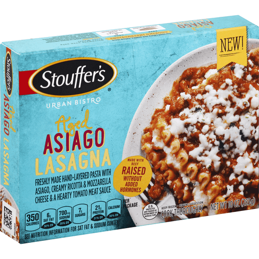 - The manufacturer of Aged Asiago Lasagna Freshly Made Hand-Layered Pasta with Aged Asiago Lasagna, Creamy Ricotta & Mozzarella Cheese & a Hearty Tomato Meat Sauce is Stouffers.