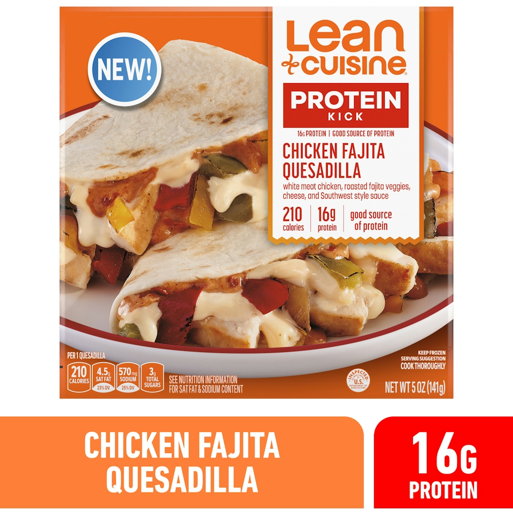 Our Lean Cuisine Chicken Fajita Quesadilla is a good source of protein. The quesadilla frozen dinners is made with white meat chicken, roasted fajita veggies, cheese and Southwest style sauce. At Lean Cuisine, we are committed to helping you eat well in a way that’s sustainable for you, with delicious and nutritious quick meals. Stock up on our delicious Lean Cuisine frozen dinners today. Always lean. Always delicious.