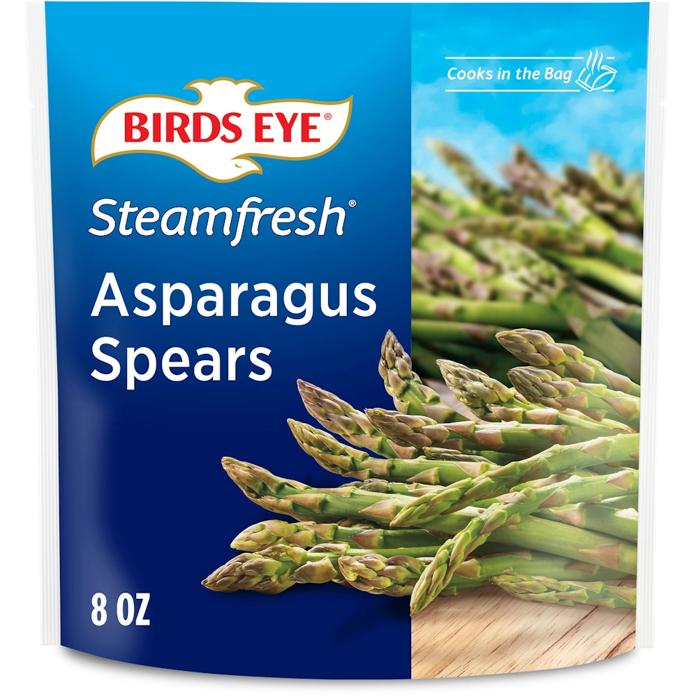 Birds Eye Steamfresh Asparagus Spears makes it simple and easy to enjoy your vegetables. Picked fresh and frozen to hold onto the flavor, these asparagus spears provide your whole family with quality vegetables to round out your meal. These frozen vegetables are made with nothing artificial, leaving you with only the best. Serve this frozen vegetable with steak or chicken for a balanced meal with color. Preparation is easy; microwave right in the bag for up to 4 minutes or on the stove for 5 minutes. Keep this 8 ounce bag of frozen asparagus in your freezer until you're ready to serve it. It’s good to eat vegetables, so Birds Eye makes vegetables good to eat.