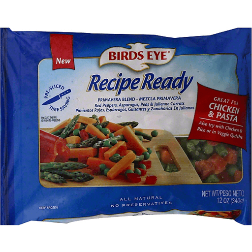 - The manufacturer of Primavera Blend, Red Peppers, Asparagus, Peas & Julienne Carrots is Birds Eye.