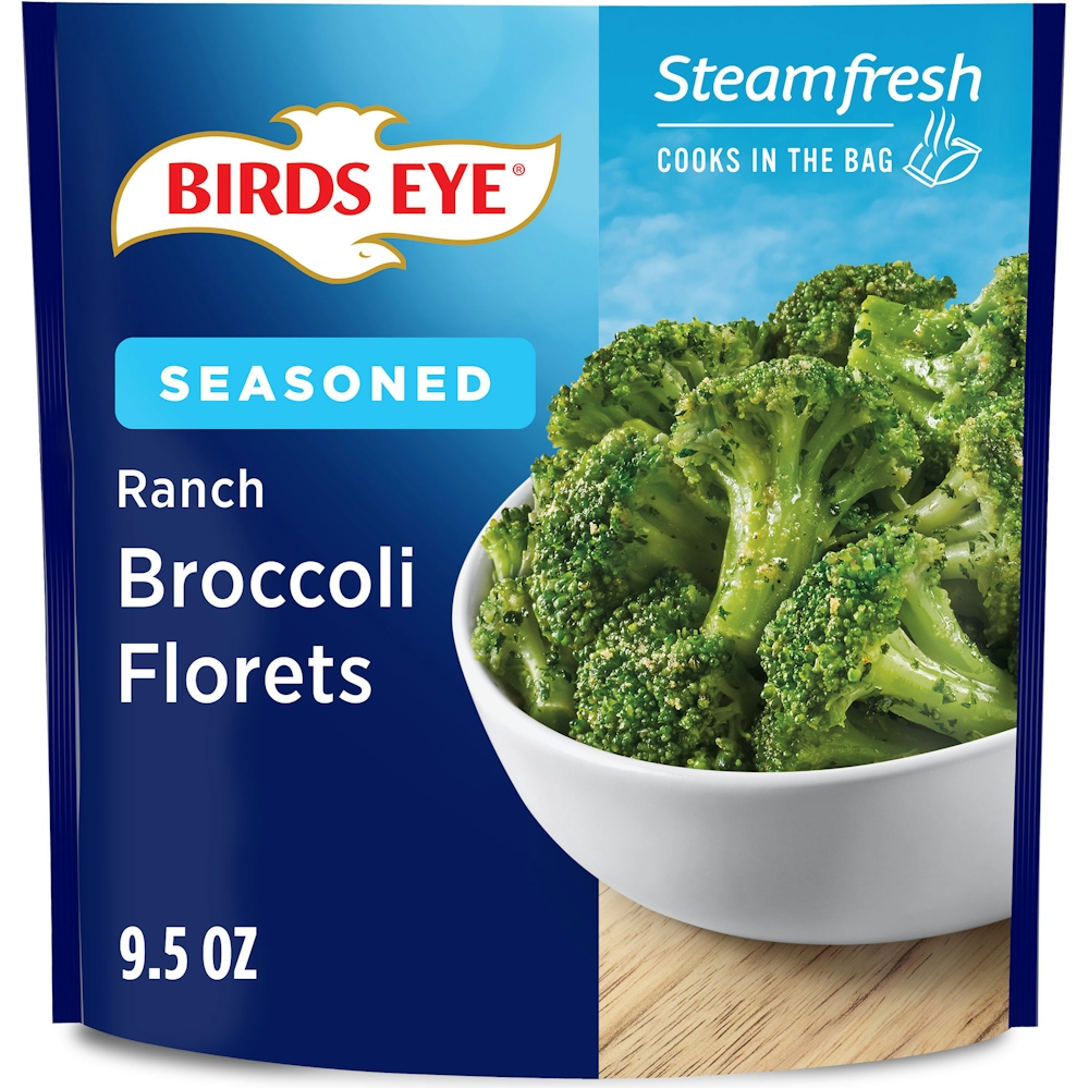 Florets frozen vegetables make it simple and easy for the whole family to enjoy their vegetables. These frozen broccoli florets are seasoned with ranch flavor. Birds Eye frozen broccoli makes a tasty addition to any meal. Your family deserves the best when it comes to eating vegetables, and that's why there are no artificial flavors or colors added. Enjoy this seasoned broccoli as a side dish, or incorporate it into your favorite recipes to add a serving of vegetables. Preparation is easy; microwave right in the bag for about 5 minutes or on the stove top. Keep the 9.5 ounce bag of broccoli florets fresh in the freezer until you are ready to enjoy. It's good to eat vegetables, so Birds Eye makes vegetables good to eat.
