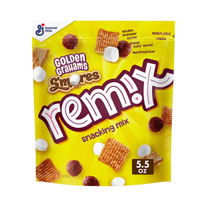 - The manufacturer of S’Mores Remix is Golden Grahams.