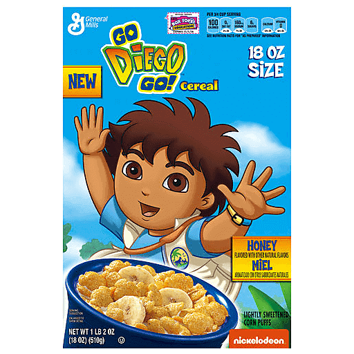 - The manufacturer of Go Diego Go Lightly Sweetened Corn Puffs Cereal, Honey is General Mills.