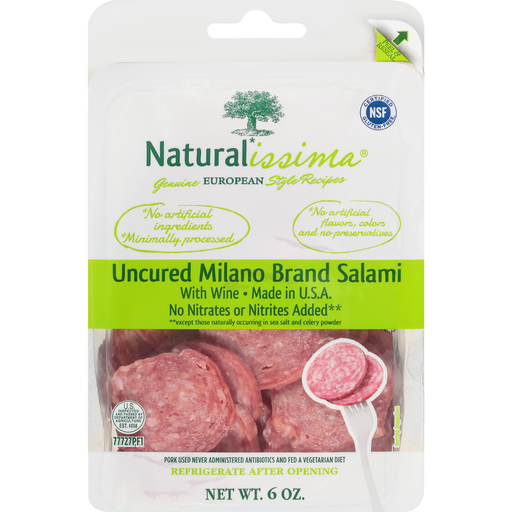 - The manufacturer of Naturalissima, Uncured Milano Brand Salami is Natural Issima.