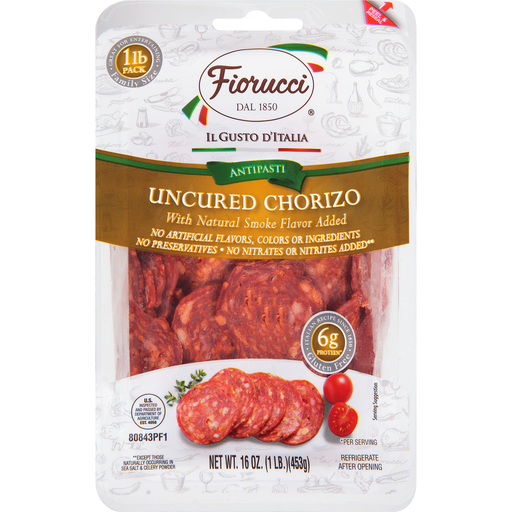 - The manufacturer of Uncured Chorizo is Fiorucci.