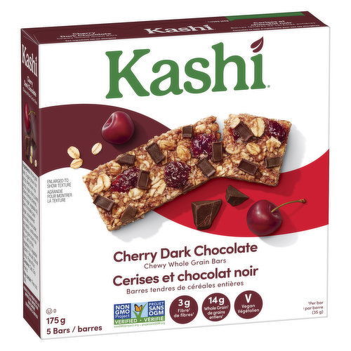 - The manufacturer of Cherry Dark Chocolate, Chewy Whole-Grain Bars is Kashi.