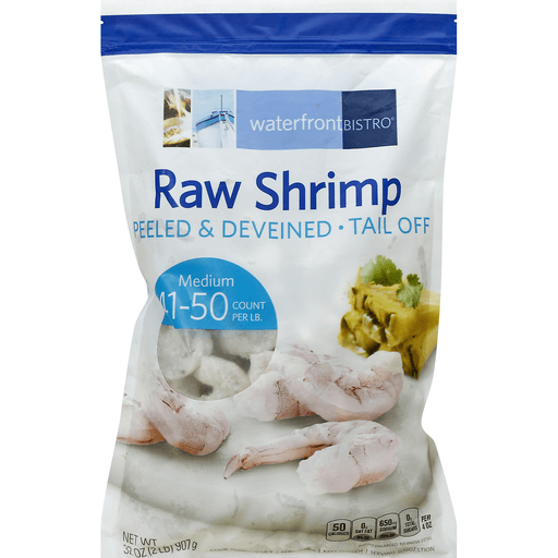 - The manufacturer of Waterfront Bistro, Raw Shrimp Medium Peeled & Deveined, Tail Off is Waterfront Bistro.
