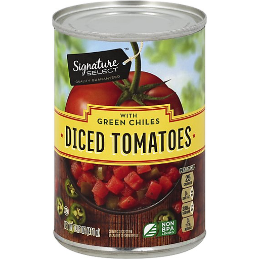 - The manufacturer of Diced Tomatoes with Green Chiles is Signature.