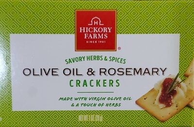 - The manufacturer of Olive Oil and Rosemary Crackers is Hickory Farms.