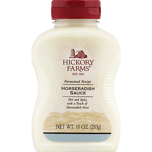 - The manufacturer of Horseradish Sauce is Hickory Farms.