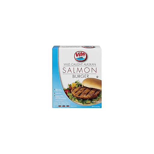 - The product category for Vita Wild Caught Salmon Burgers is Seafood.