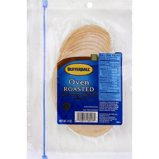 - The manufacturer of Oven Roasted Chicken Breast is Butterball.