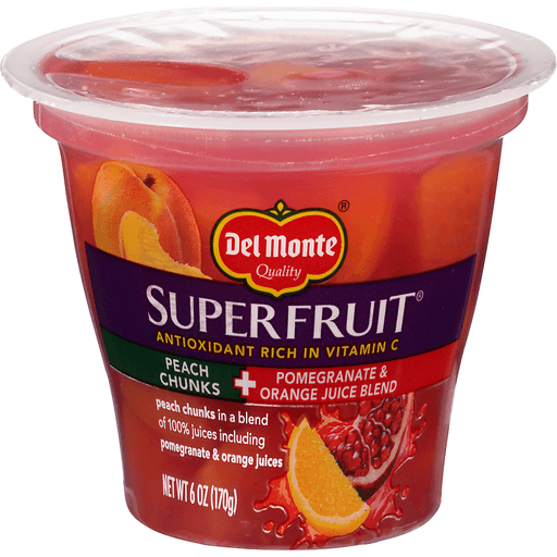 Peach chunks in a blend of 100% juices including pomegranate & orange juices. Antioxidant rich in vitamin C. 100% daily value vitamin C. Peaches product of USA.