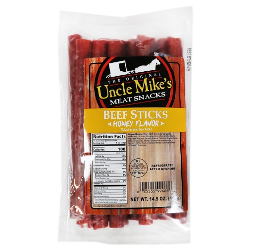- The manufacturer of Beef Sticks is Uncle Mike's.