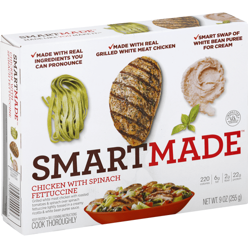 - The manufacturer of Chicken with Spinach Fettuccine is SmartMade.