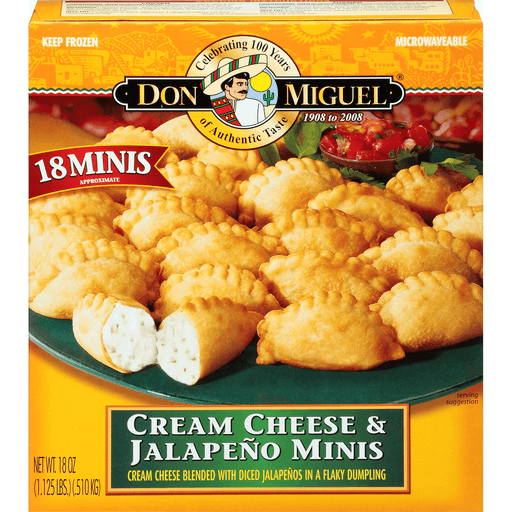 - The manufacturer of Cream Cheese Blended with Diced Jalapenos in a Flaky Dumpling, Cream Cheese & Jalapeno Minis is Don Miguel.