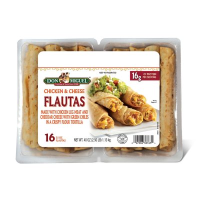 - The manufacturer of Chicken & Cheese Flautas is Don Miguel.