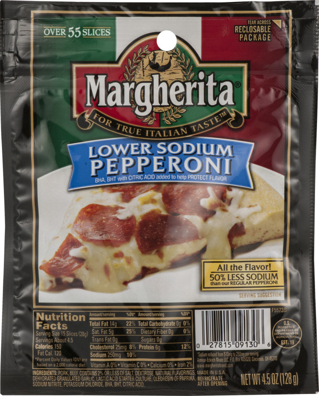 - The manufacturer of Lower Sodium Pepperoni Slices is Margherita.
