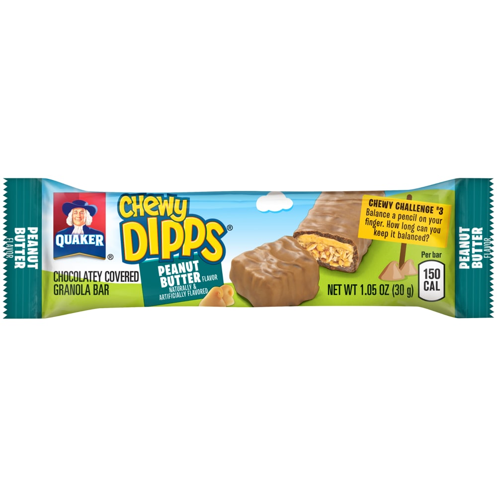 Quaker Chewy Dipps Peanut Butter is the perfect combination of creamy peanut buttery taste wrapped in a delicious chocolaty shell, all with the Chewy flavors you know and love.