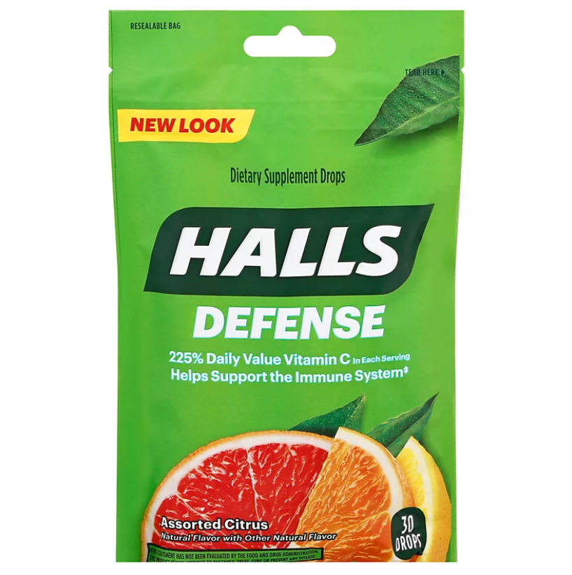 HALLS Defense Assorted Citrus Vitamin C Drops keep you ready for whatever comes tomorrow. Packed with 150 percent daily value of vitamin C per serving, these vitamin drops are a great immune system support. The assorted citrus flavors make taking your vitamin C supplement a delicious experience. HALLS also offers sugar free vitamin C drops. To use as a dietary supplement, simply take two HALLS vitamin drops daily, but do not take more than six servings per day. HALLS Defense Vitamin C Drops are formulated for adults and children five years and older. This vitamin c supplement package contains 14 individually wrapped throat lozenges and is resealable for freshness and portability. It is also a perfect inclusion in a healthy gift or care package.