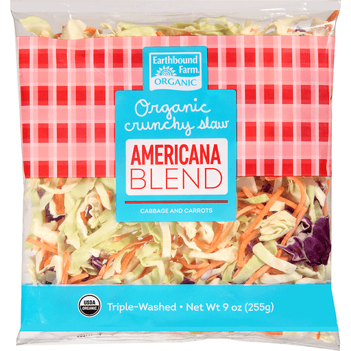 - The manufacturer of Organic Crunchy Slaw Americana Blend Cabbage and Carrots is Earthbound Farm.
