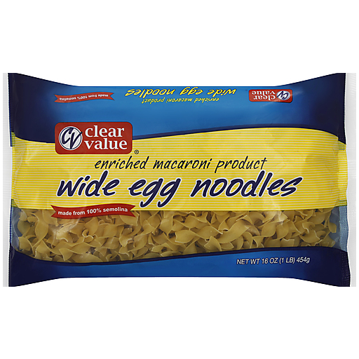 - The manufacturer of Wide Egg Noodles is Clear Value.