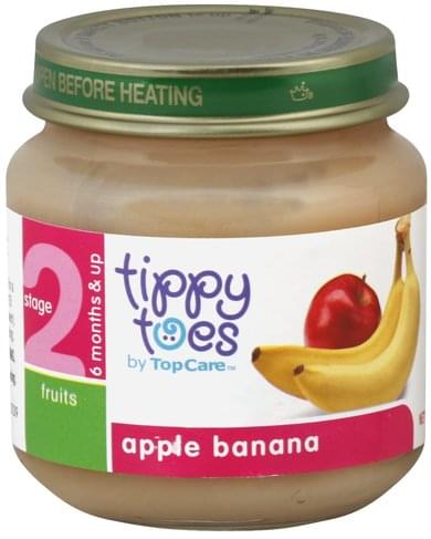 - The manufacturer of Tippy Toes, Apple Banana is Topcare.