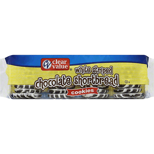 - The product category for Clear Value, Cookies, White Striped Chocolate Shortbread is Cookies.