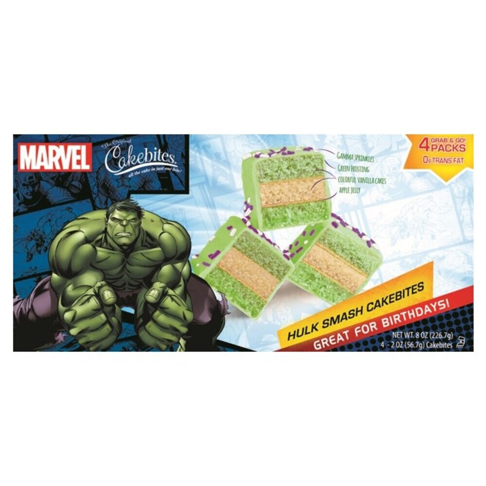 - The UPC barcode for Hulk Smash Cakebites is 0037695193182.