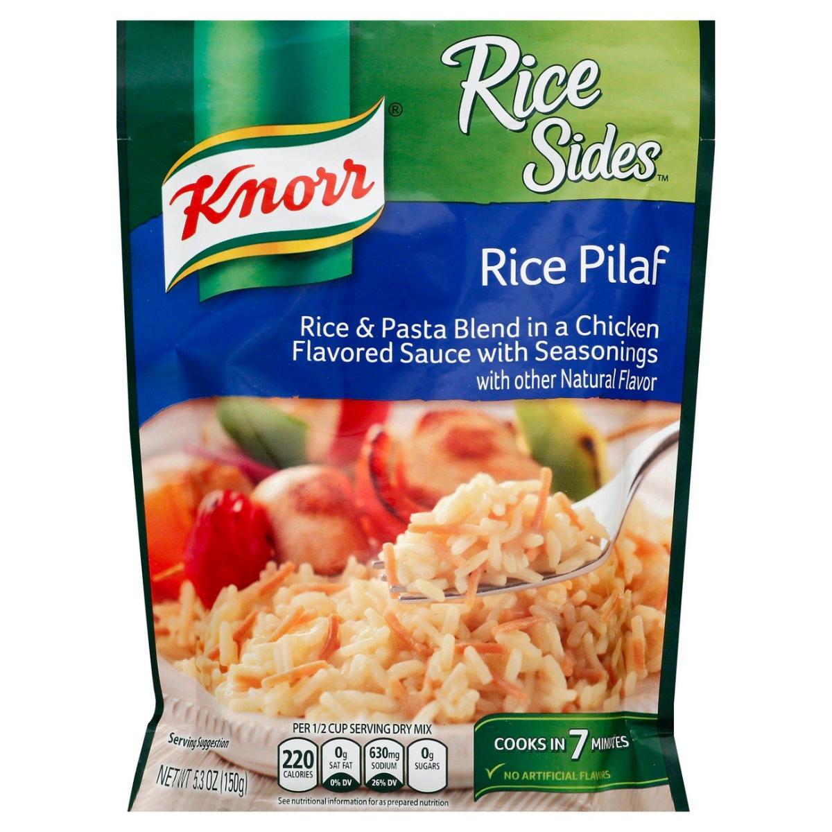 Knorr No Artificial Flavors Rice Pilaf Sides, 7 Minute Cook Time, Treat your taste buds to Knorr Rice Sides. Your family is sure to love the flavor of our Rice Pilaf, our rice and pasta blend that expertly combines rice and pasta in a savory chicken-flavored sauce. On top of tasting delicious, our Rice Pilaf is quick and easy to prepare. Knorr rice side dishes cook in just 7 minutes on the stovetop, or in the microwave, and they're perfect as the base for a delicious main dish or as a standalone rice side dish. Make Knorr Rice Sides the foundation of a crowd-pleasing dinner or an easy meal. Knorr Rice Sides have no artificial flavors, no preservatives, and no added MSG, except those naturally occurring glutamates, making them an excellent choice for creating a family-favorite meal. Use these easy rice side dishes to create a mouth-watering main dish. Simply prepare Knorr Rice Sides and add your favorite meat and vegetables to make a dinner your family is sure to love. You can find great recipes from Knorr, like our chef-inspired Mediterranean Chickpea Pilaf. Discover other quick and delicious dinner ideas at Knorr.com, with hundreds of recipes to help you find dinner inspiration. Knorr offers more than 40 varieties of rice and pasta Sides, so you can be sure to find flavors your family will love. Knorr believes that good food matters, and everyday meals can be just as magical as special occasions. Our products owe their taste and flavors to the culinary skills and passion of our chefs. Knorr sources high-quality ingredients to create delicious side dishes, bouillons, sauces, gravies, soups, and seasonings enjoyed by families everywhere.