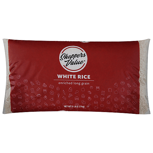 - The manufacturer of Enriched Long Grain White Rice is Shoppers Value.