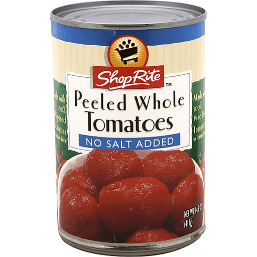 - The product category for Shoprite, No Salt Added, Peeled Whole Tomatoes is Canned & Prepared Beans.