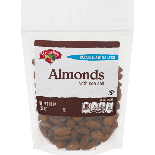 - The manufacturer of Roasted & Salted Almonds is Hannaford.