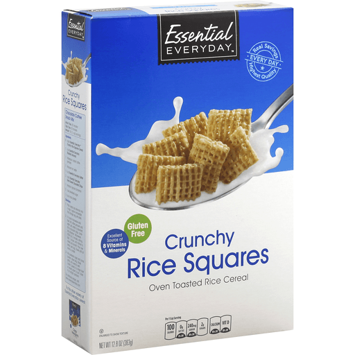 - The product category for Essential Everyday, Crunchy Rice Squares, Oven Toasted Rice Cereal is Grains, Rice & Cereal.