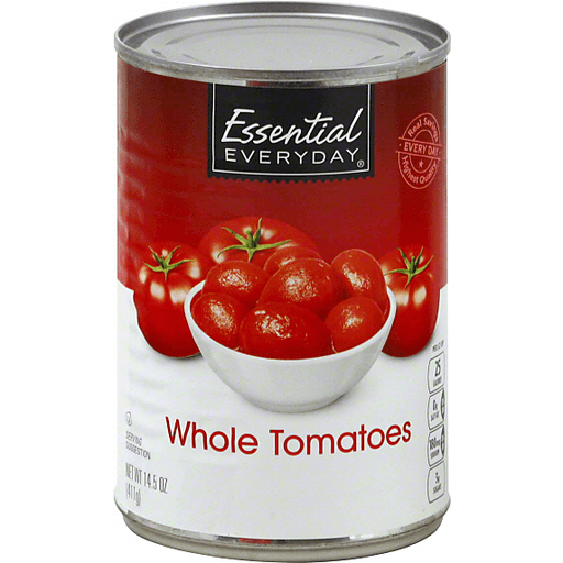 Discover the delicious flavor of Essential Everyday Whole Tomatoes. A Delicious, juicy whole tomato, bursting with flavor. Add them to your favorite savory dishes for a rich, tangy taste that will elevate your meals. Perfect for making sauces, stews, and soups. Get this can of Fresh Whole Tomatoes containing 411 grams.