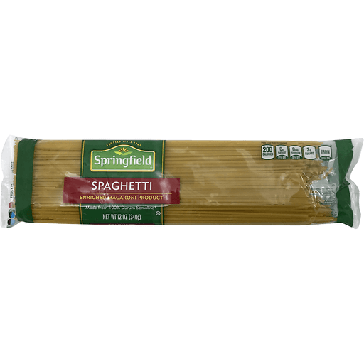 - The manufacturer of Spaghetti Enriched Macaroni Product is Springfield.