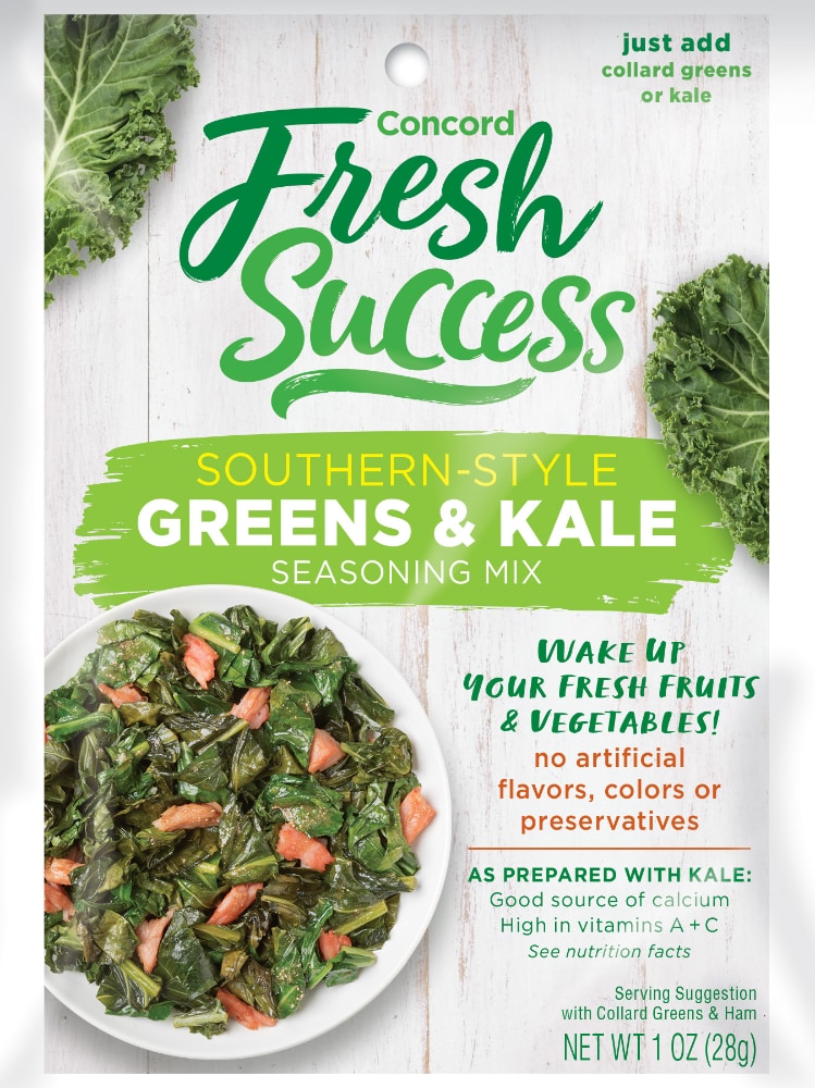 - The manufacturer of Southern-Style Green & Kale Seasoning Mix is Concord Fresh Success.