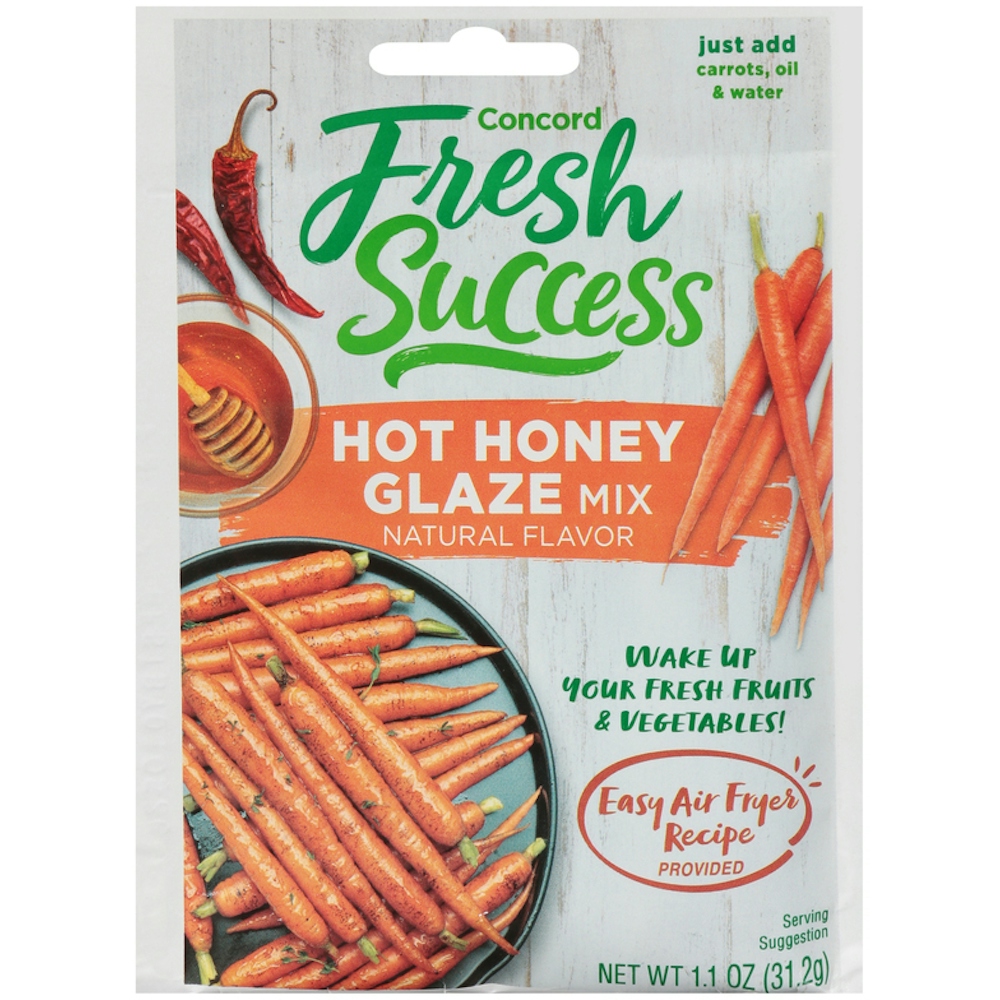 Concord Fresh Success makes it easy to prepare hot honey glazed carrots at home. To prepare, mix seasoning mix pouch with 2 Tbsp. of water and set-aside to allow glaze to thicken. Toss the glaze over roast carrots or other vegetables such as sweet potatoes or butternut squash. Also great over chicken wings and other dishes!